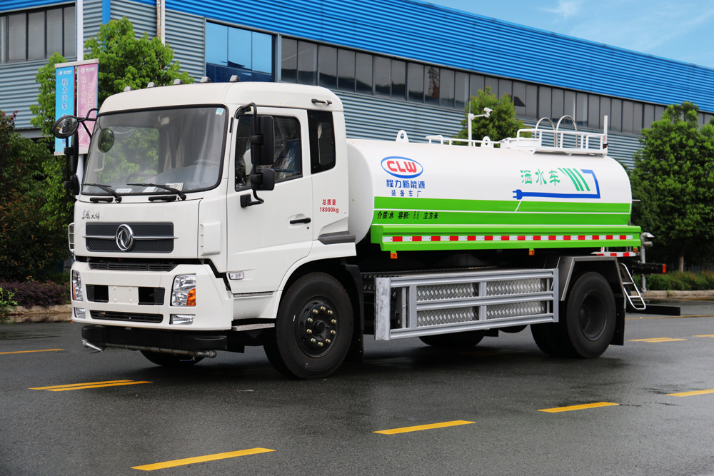 四、其他說明: 東風天錦純電動灑水車是在純電動二類底盤的基礎上,加裝低壓沖洗、灑水系統,由機械、液壓(氣路)、電器三部分合為一體的專用灑水作業車。采用自吸式雙級離心泵,效率高、灑水寬度大、水槍射程遠,低壓水泵由底盤變速器取力器通過傳動軸直接傳動。