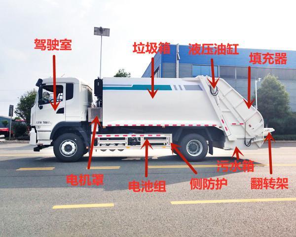 東風純電動壓縮垃圾車是在東風純電動二類底盤的基礎上,加裝垃圾箱、垃圾填充器、液壓系統,由機