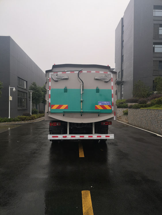 3、掃路車采用東風(fēng)純電動(dòng)二類汽車底盤(pán)改裝,加裝風(fēng)機(jī)、清水箱、垃圾箱、左右立掃、掃盤(pán)降塵系統(tǒng)、液壓系統(tǒng)、專用裝置電控系統(tǒng)和副車架等改裝而成。