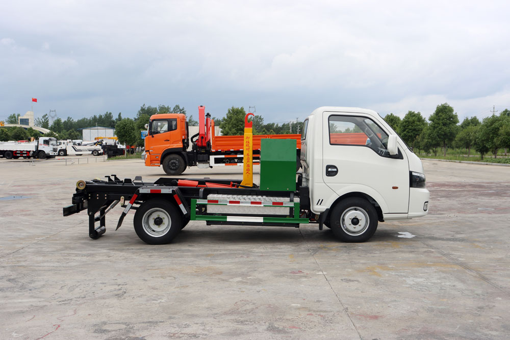 四、其他說明: 東風(fēng)華神純電動(dòng)車廂可卸式垃圾車,是在純電動(dòng)二類底盤的基礎(chǔ)上,加裝垃圾箱勾臂、液壓系統(tǒng),由機(jī)械、液壓(氣路)、電器三部分合為一體的專用垃圾轉(zhuǎn)運(yùn)車。