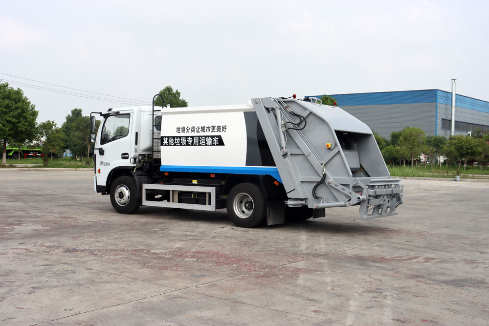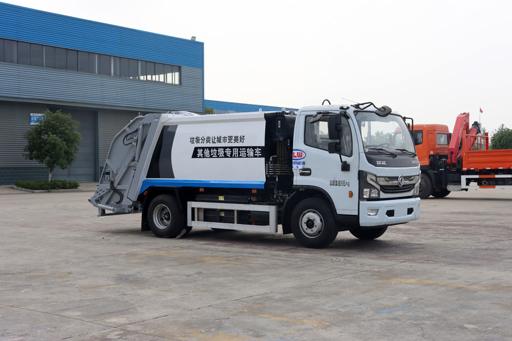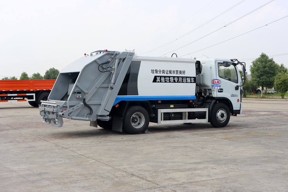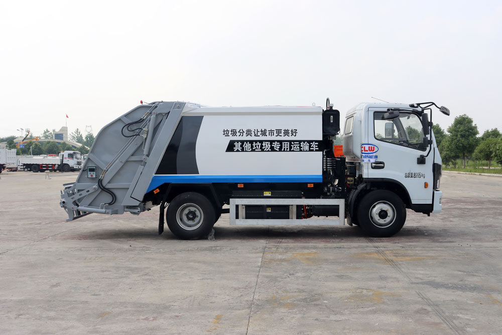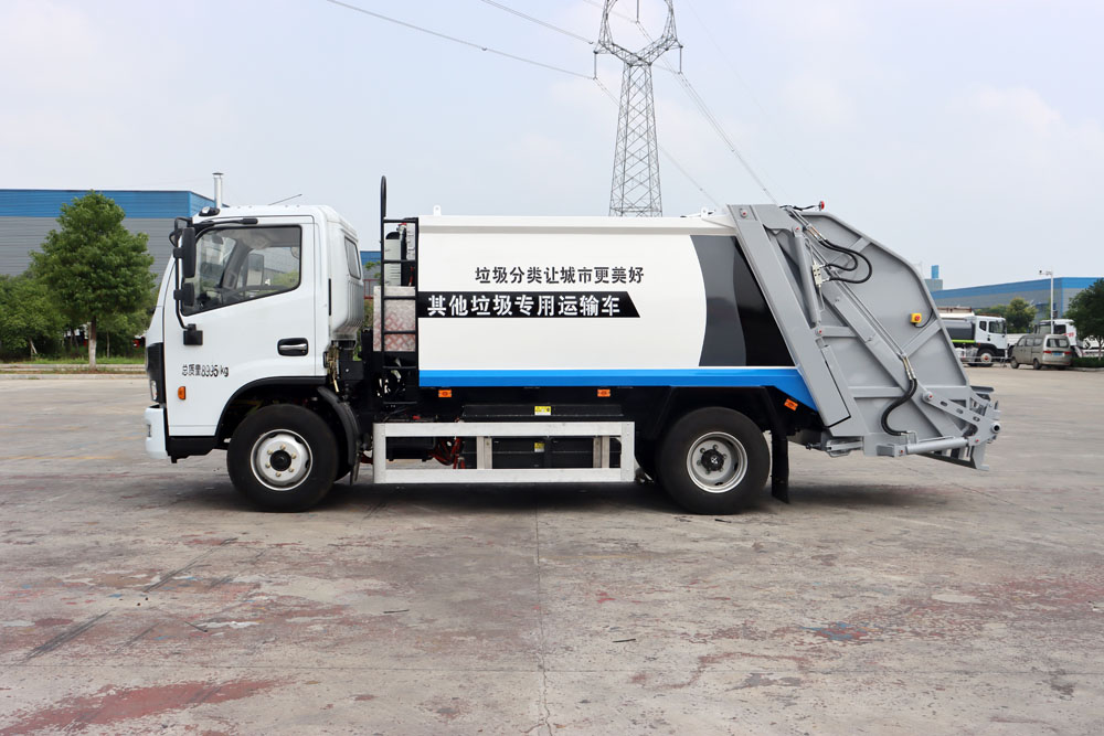 該車特點 東風凱普特純電動二類底盤的基礎上,加裝垃圾箱、垃圾填充器、液壓系統,由機械、液壓(氣路)、電器三部分合為一體的專用垃圾處理、轉運作業車。整車為全密封型,自行壓縮、自行傾倒、壓縮過程中的污水全部進入污水箱,徹底的解決了垃圾運輸過程中的二次污染,具有壓力大、密封性好、