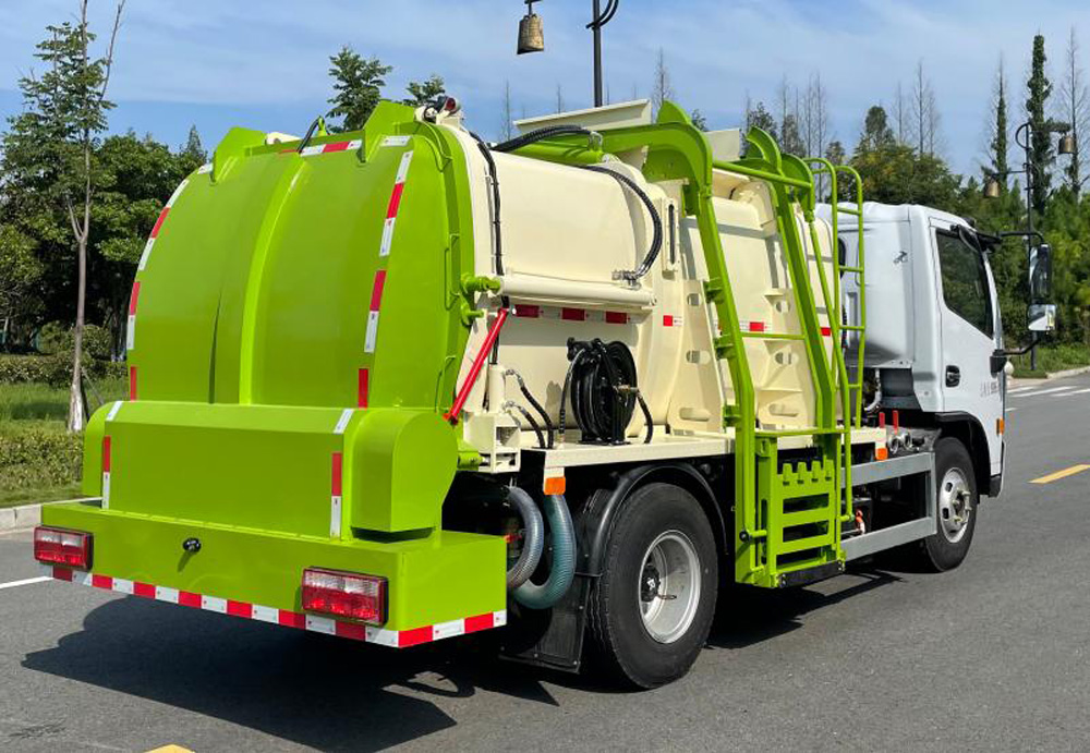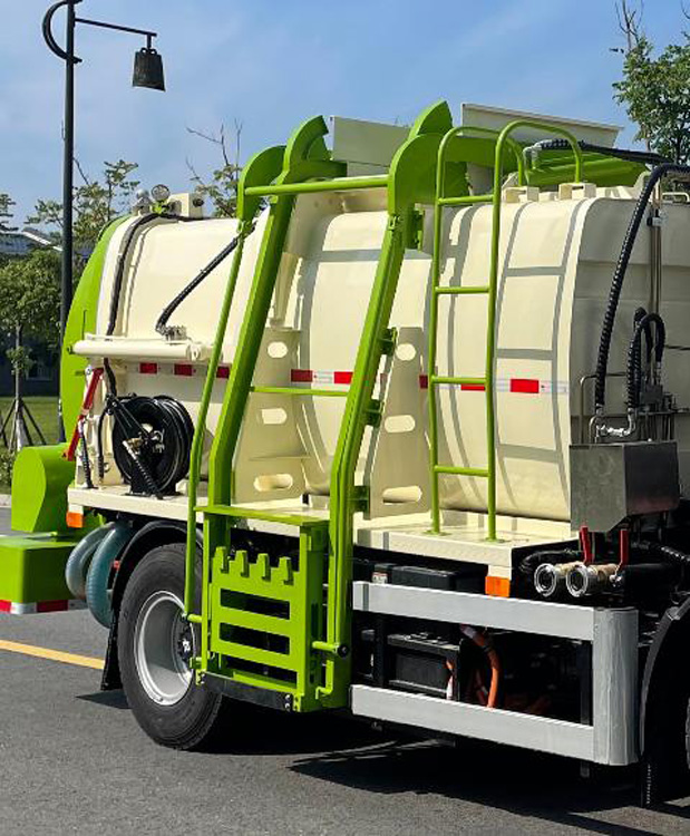 該車特點 該產品是作為賓館、餐館、企事業單位等餐廚垃圾收集及運輸的專用車輛。 垃圾箱可實現箱內餐廚垃圾固液的初步分離,并采用大容積污水箱,提高產品裝載量; 電控系統采用無線遙控,并通過作業動作邏輯互鎖,保證操作的精準性,杜絕誤操作。