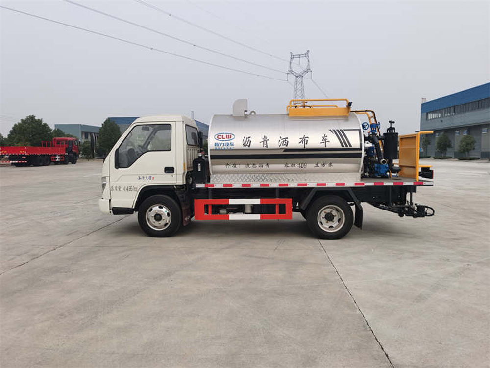 2、瀝青的灑布控制在駕駛室內完成,可以實現對尾部噴嘴全開和全關控制,尾部噴嘴單獨手動開關從而實現了任意調節噴灑的寬度。方便司機一人操作;