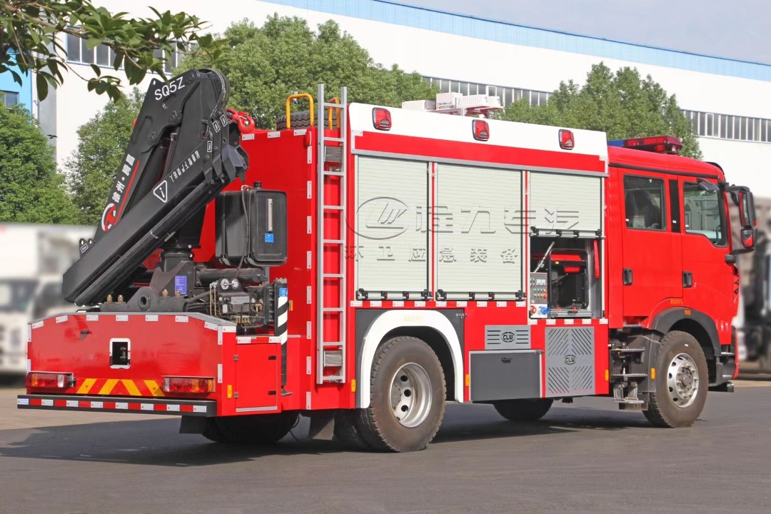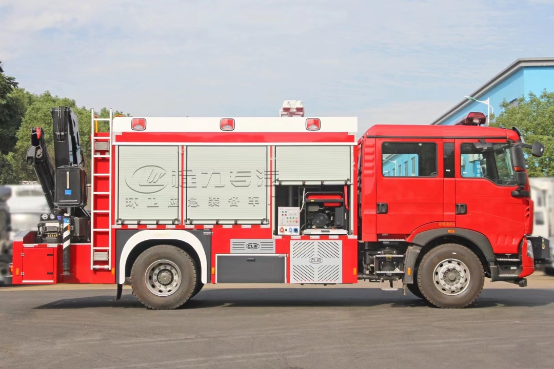 重汽豪沃搶險救援消防車,前拖后吊,具有起吊、自救/牽引、清障、發(fā)電、照明等功能,可裝備大量的破拆、偵檢、堵漏、防護等各類消防器材或工具;