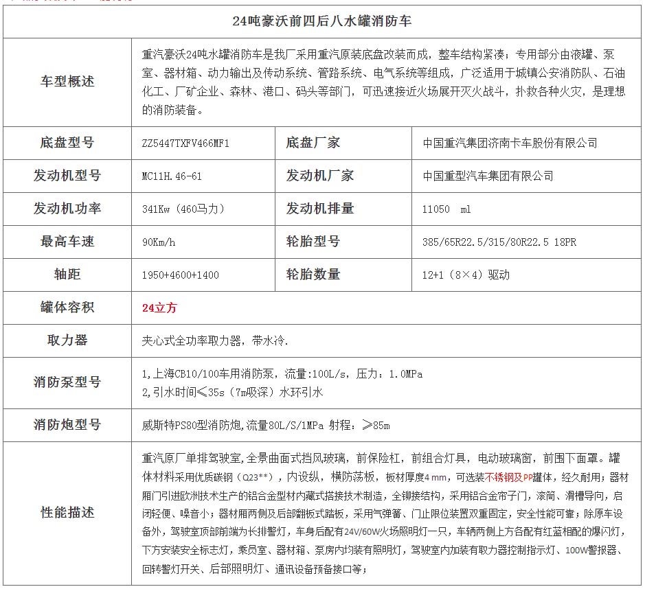 一、底盤配置: 采用重汽豪沃HOWOZZ5447TXFV466MF5車身,配置玉柴MC11.46-61發動機460馬力,國六排放標準,軸距1950+4600+1400(mm),整備質量17.2噸,額定載質量24.8噸,陜齒十二擋變速箱,帶動力轉向,帶原廠空調,該車上黃牌,城區道路請注意限行標識。