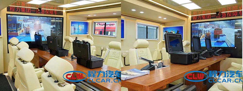 箱體:自動調平支撐系統、車身骨架及蒙皮改制、車身防銹處理、聚氨酷發泡保溫處理、裙邊改制等兩側擴展箱體:采用專用C型導軌,擴展箱體采用獨立電動控制,可電動和手動操作,舉升箱體: 液壓舉升支撐系統,舉升高度1.9米,形成獨立的休息區;內飾系統:車內箱體選用內飾板和皮料軟包。耐磨防滑地板革,頂部燈帶辦公系統:會議區-真皮座椅、長條形會議桌,可同時滿足多人會議,設備操作區-設備操作臺,同時滿足2人操作休息區:單人床,床熱;整車噴涂:采用標準噴涂,使用水性環保油漆,整車外觀可根據用戶需求進行噴制,警示設備:長排警燈、警報主控、方形警燈、閃屏燈等;配電系統:配電箱、電器控制系統、漏電保護系統、接地纖、市電接入系統、充電系統、發電機、冷暖空調、換氣扇等通信設備:車載天線、衛星調制解調器、衛星電視天線、衛星電話、衛星線纜輔材等指揮系統:計算機網絡設備-4GLTE系統、工控主機、路由器、交換機、彩色激光多功能一體機、4G車載圖像傳輸設備等:圖像采集設備-車頂攝像機系統、硬盤錄像機、車內攝像機、視頻會議攝像機、單兵、專業攝像機、無人機等,語音調度設備-指揮調度平臺、集群中繼臺、集群車臺、車載短波電臺等;